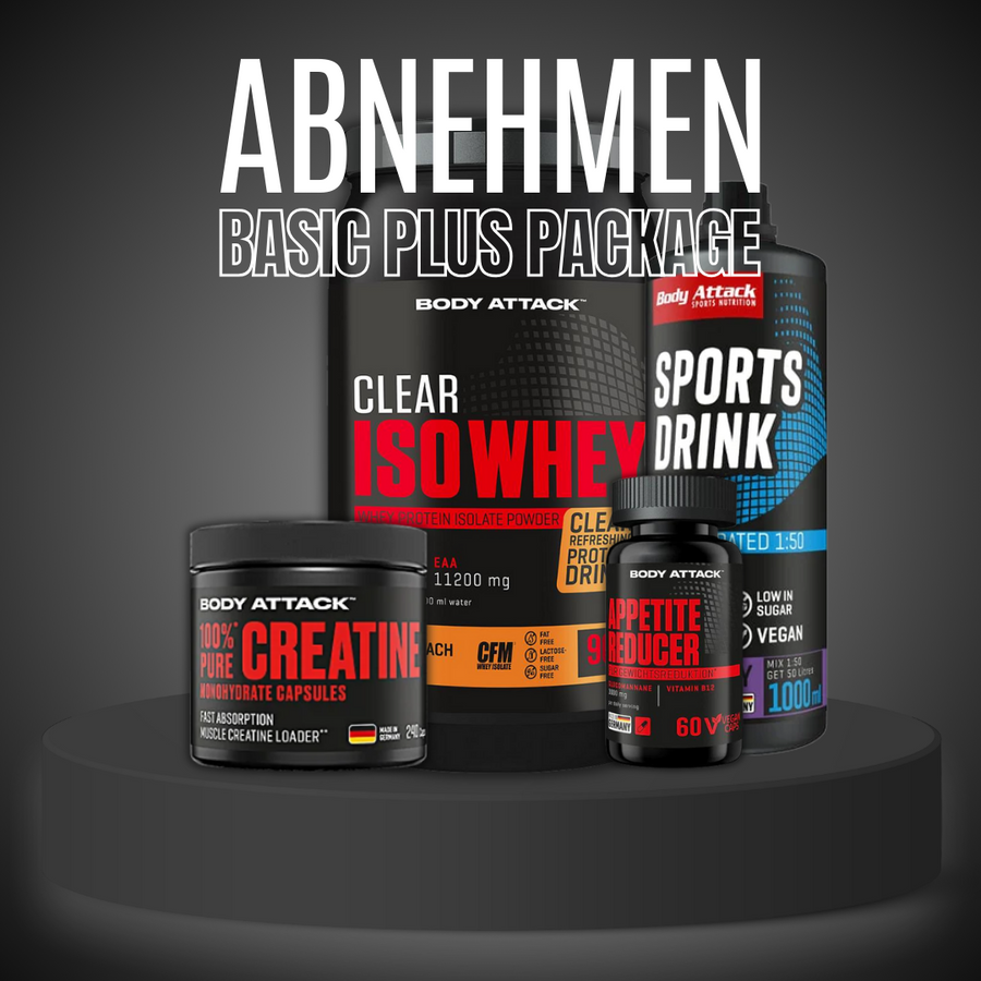 Mit unserem Abnehmen Paket Basic Plus erhältst du die Basics die du benötigst um deinen Körper in top Form zu bringen. Mit dem Basic Package erhältst du die beiden Must Have Produkte für Muskelaufbau und Kraft, Proteinpulver und Creatine! Des Weiteren unterstützen dich beide Produkte dabei schnell zu regenerieren, mehr Leistung im Training zu bringen und letztlich auch effektiv Fett zu verbrennen, während du gleichzeitig Muskeln aufbaust oder diese zumindest halten kannst.