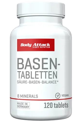 Sauer macht lustig – Übersäuerung sollte man allerdings vermeiden. Mit den BODY ATTACK Basentabletten kannst du dich vor Übersäurung schützen. Ob beim letzten Anstieg eines Radrennens, der Sprint zum Ball oder auf der Zielgeraden beim Marathon: Brennen erst mal die Beinmuskeln, geht nichts mehr. Grund dafür ist eine Übersäuerung der Muskulatur. Hier können Basentabletten Abhilfe schaffen und dabei helfen, überflüssige Säuren zu neutralisieren und deinen Körper mit wichtigen Spurenelementen wie z.B. Calcium zu versorgen. Magnesium und Zink runden das Nährstoffprofil des Mineralstoffkomplexes ab und tragen zur Verringerung von Müdigkeit und Erschöpfung bei.