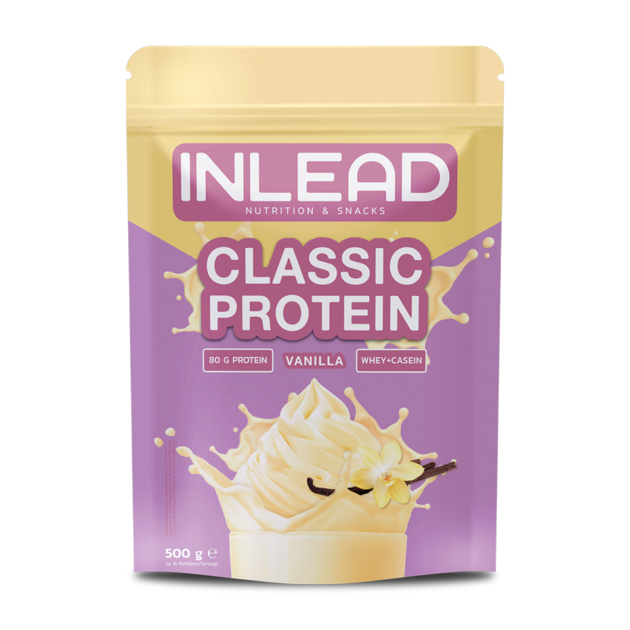 Vor allem Kraftsportler achten auf eine erhöhte Eiweiß-Zufuhr in ihrer Ernährung, aber auch für jeden anderen Menschen ist die tägliche Zufuhr von Proteinen essentiell. Mit unserem Inlead Classic Protein Proteinpulver helfen wir Dir, deine Muskulatur aufzubauen und zu schützen. Jeder Shake enthält hochwertige Vitamine und Aminosäuren, die leicht bekömmlich sind und wird vom Körper ideal aufgenommen werden können. Unsere Pulver eignen sich für Proteinshakes aber auch für selbst gemachte high Protein-Snacks aller Art.