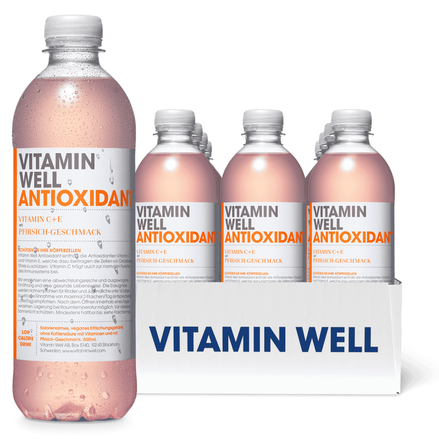 Vitamin Well Antioxidant enthält die Antioxidantien Vitamin C und Vitamin E, welche dazu beitragen die Zellen vor Oxidativem Stress zu schützen. Vitamin C trägt auch zur normalen Funktion des Immunsystems bei.